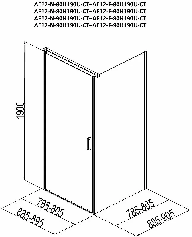 Душевой уголок Aquanet Cinetic AE12-N-80H190U-CT + AE12-F-90H190U-CT 254232 80x90 см стекло прозрачное профиль хром купить