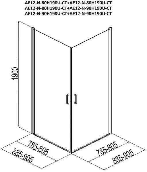 Душевой уголок Aquanet Cinetic AE12-N-80H190U-CT-2 254234 80x80 см стекло прозрачное профиль хром