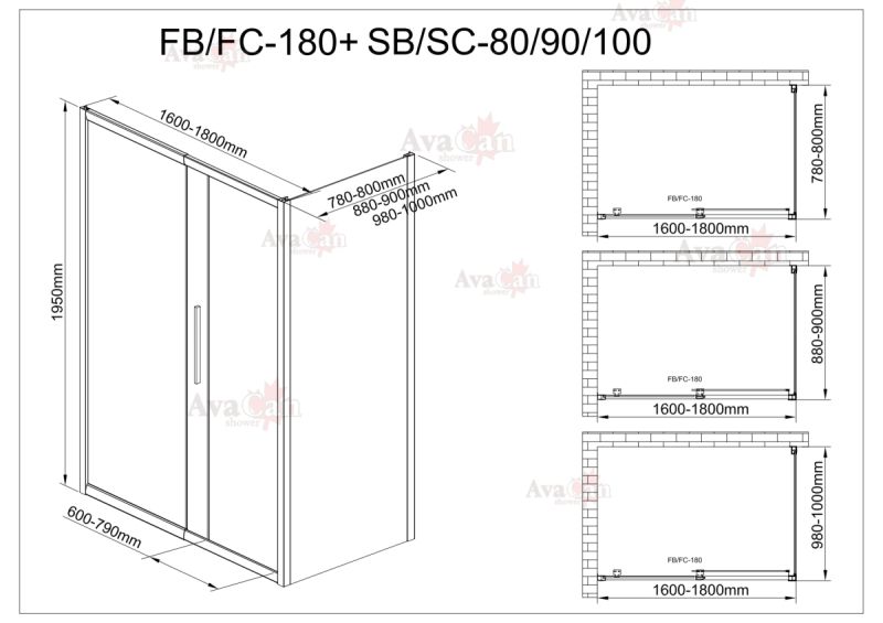 Душевой уголок AvaCan FB 160-180+ SB 90 чёрный