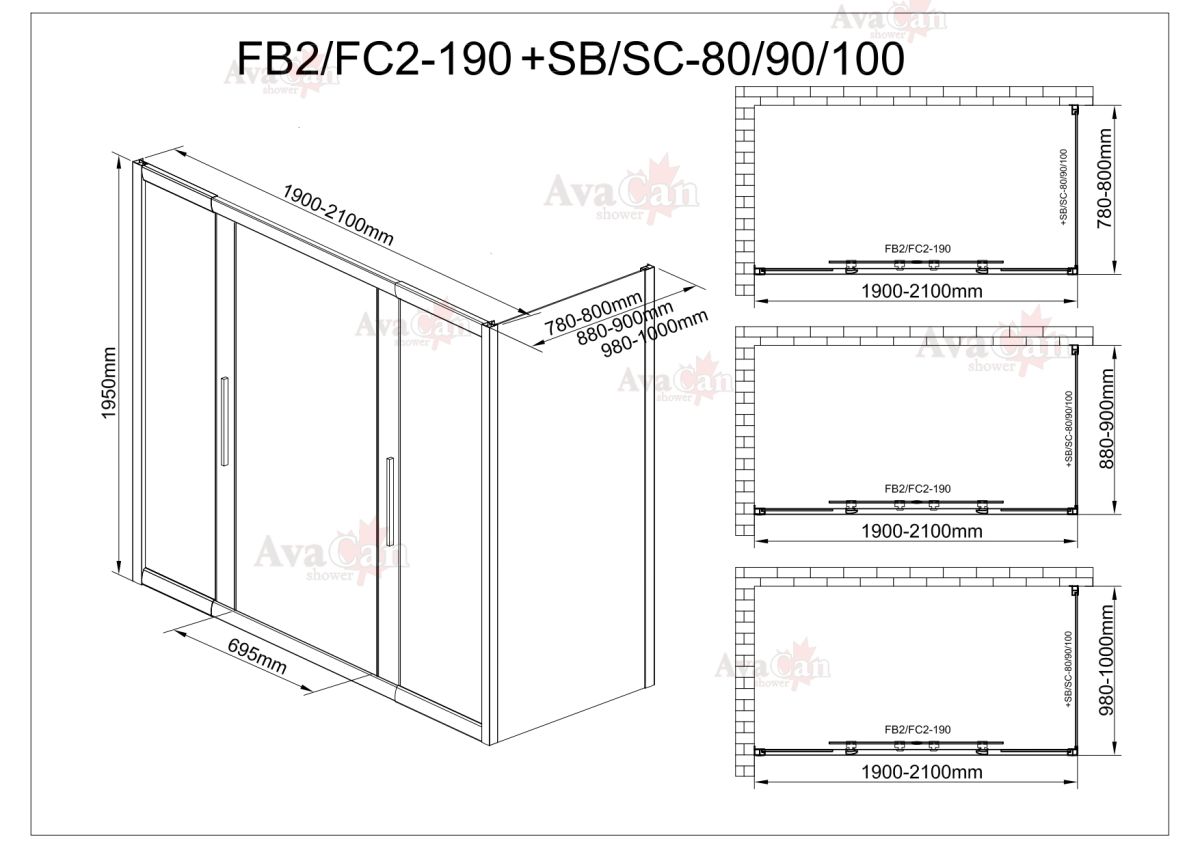 Душевой уголок AvaCan FB2 190-210 + SB100 чёрный