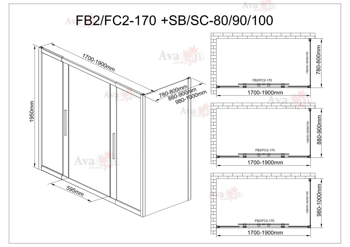 Душевой уголок AvaCan FC2 170-190 + SC 80 MT хром