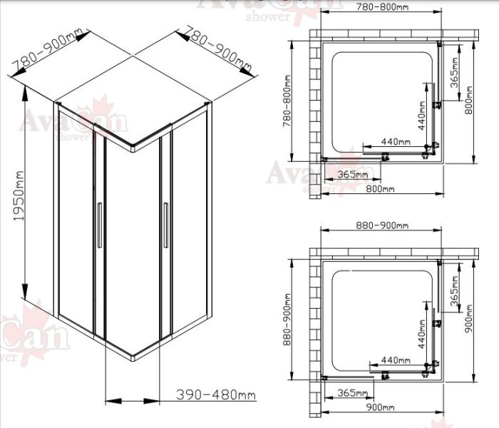 Душевой уголок AvaCan KB 80-90 чёрный