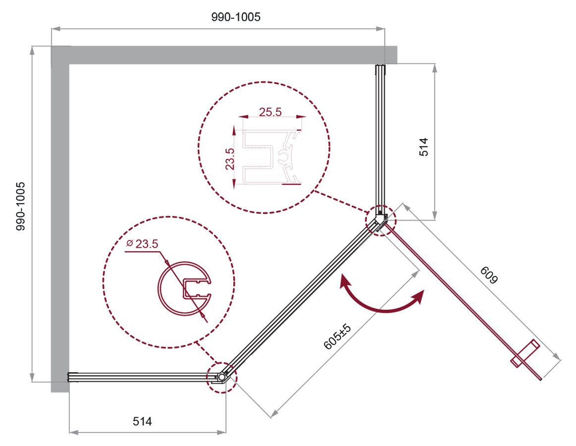 Душевой уголок BelBagno Uno 100см чёрный UNO-195-P-1-100-C-NERO
