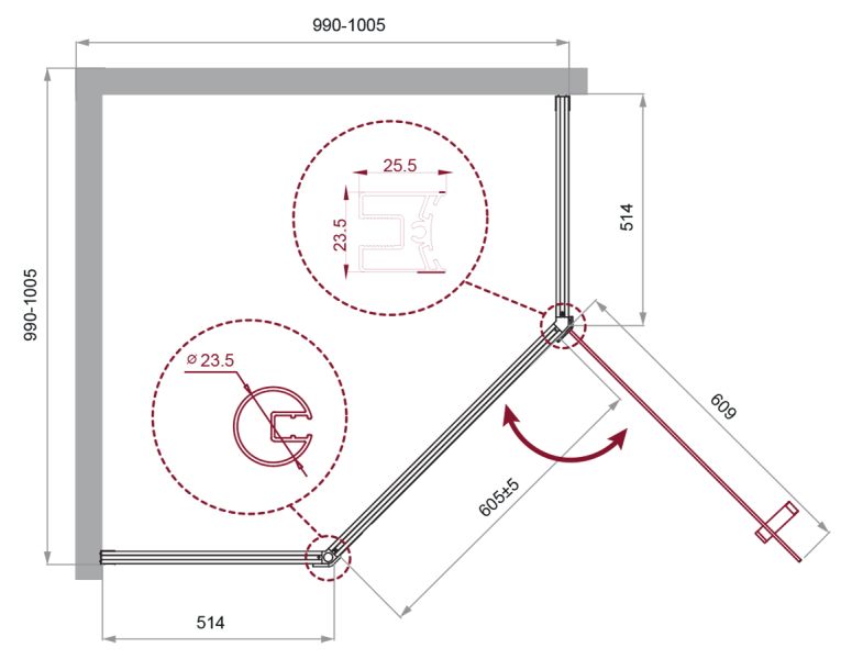Регулировка ширины: предусмотрена за счет боковых профилей