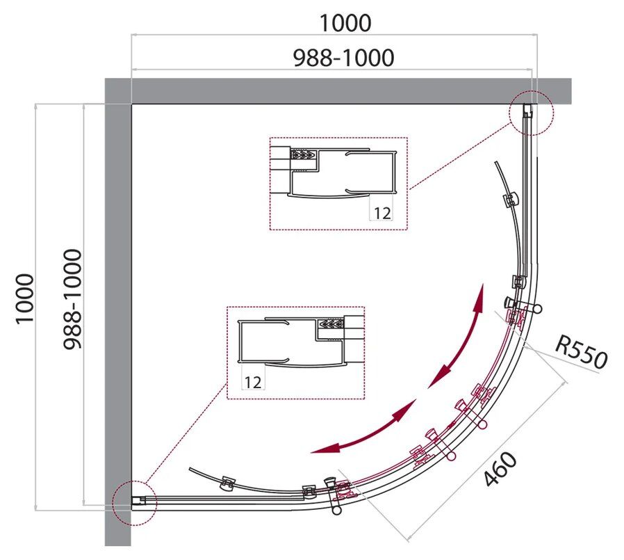 Душевой уголок BelBagno Uno-195 UNO-195-R-2-100-CH-CR 100x100см хром купить