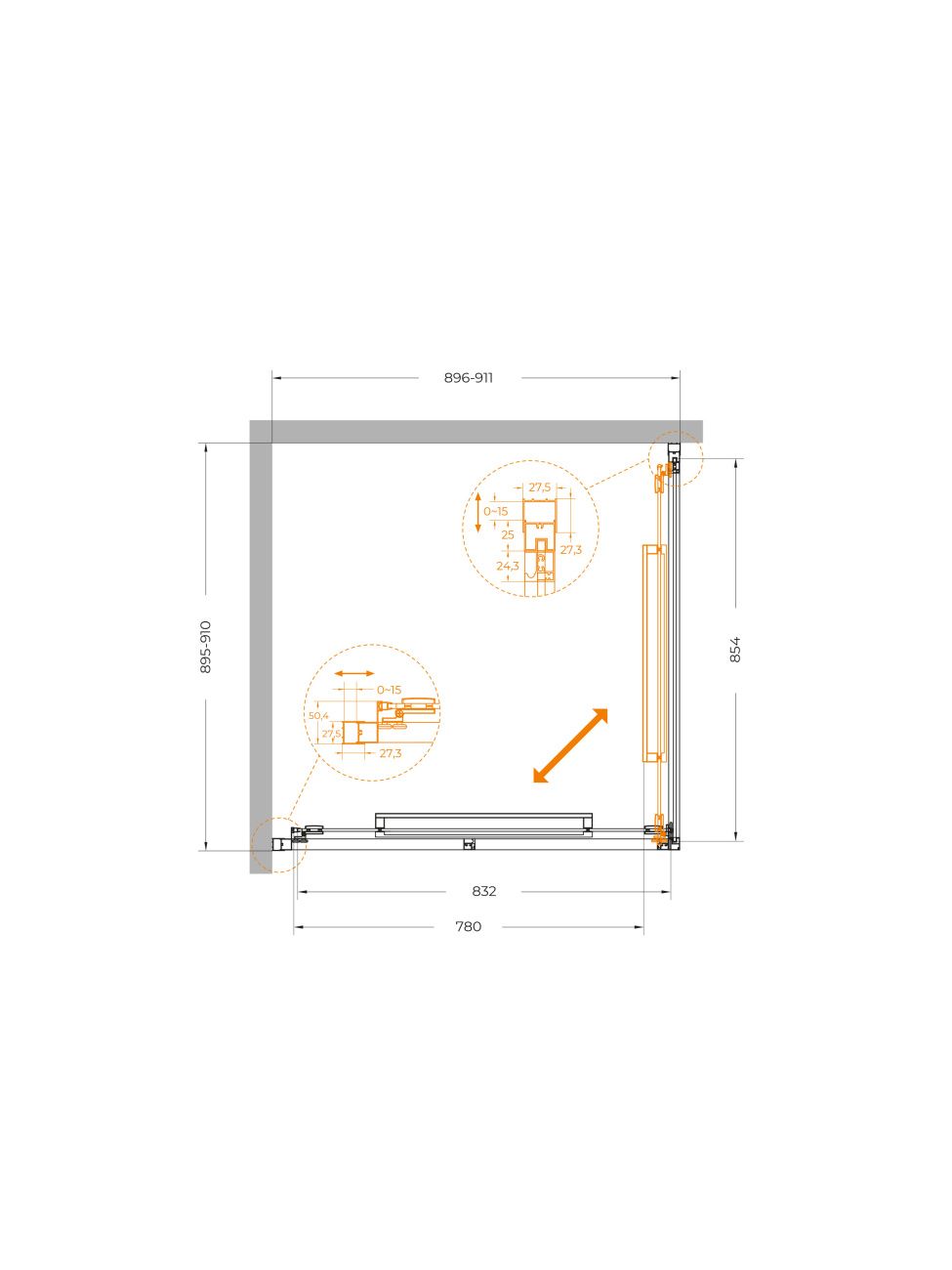 Характеристики Размеры : 90×90 см. Ширина входа : 78 см. Высота : 195 см. Диа... Подробнее