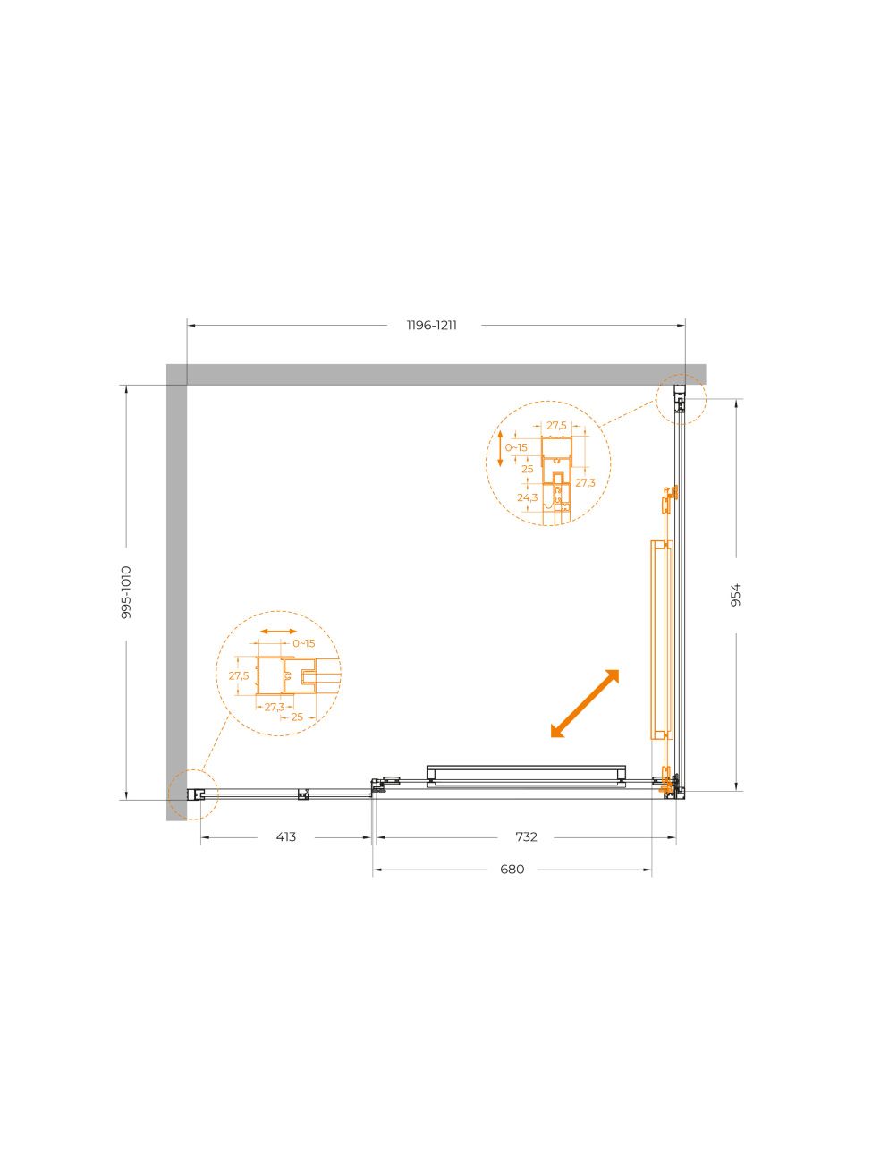 Душевой уголок CEZARES LUX-AH-FS-11-120/100-C-CR