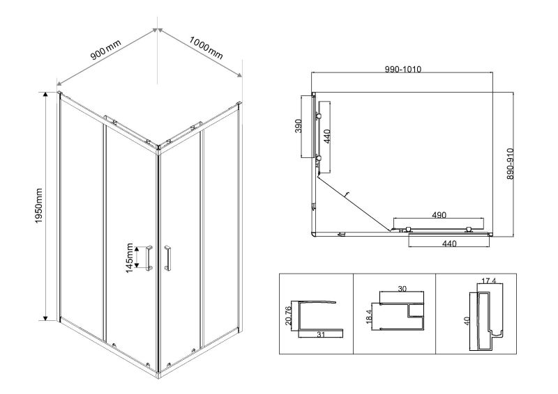 Душевой уголок Vincea City VSS-5CT9010CLB, 1000*900, черный, стекло прозрачное