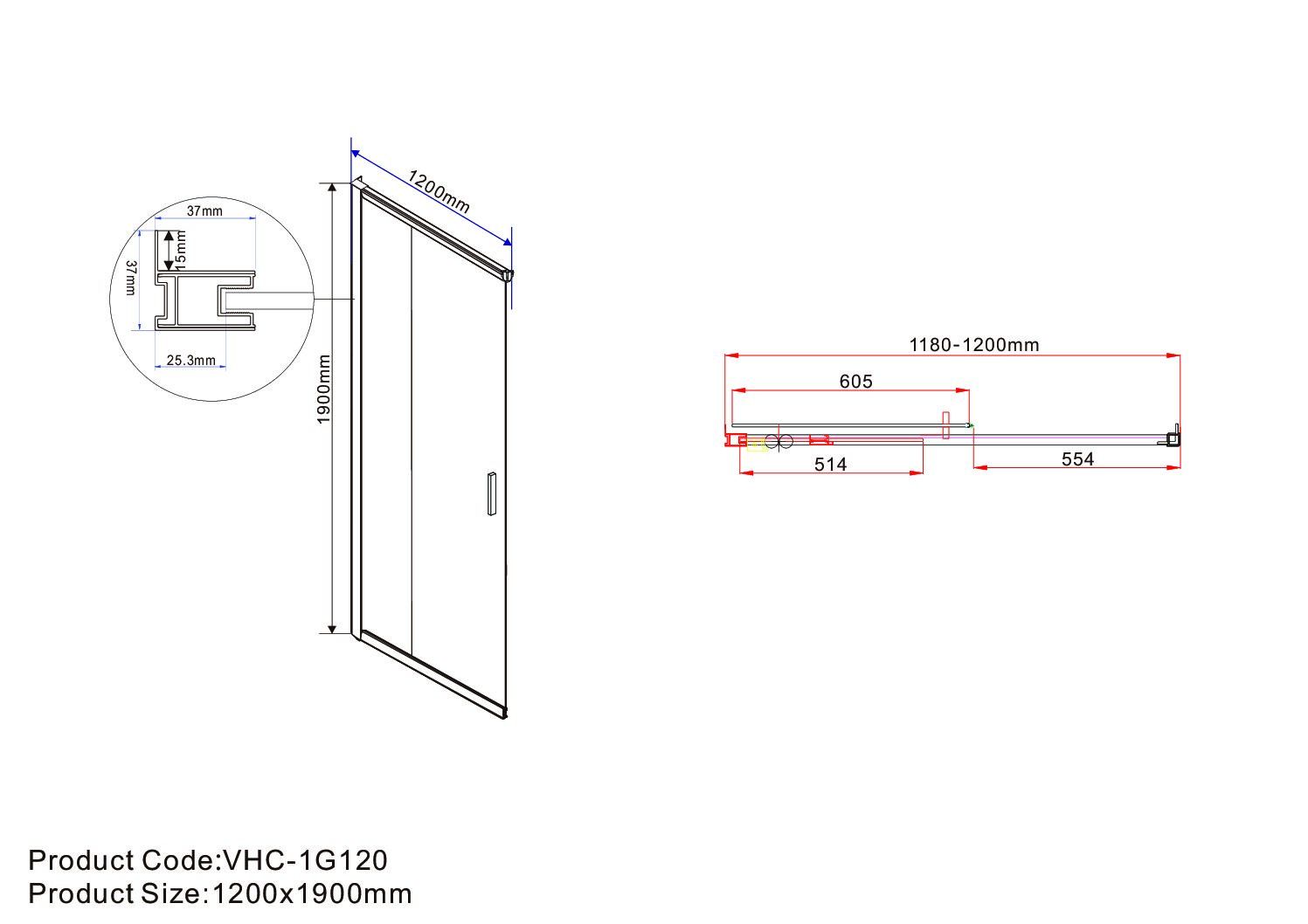 Душевой уголок Vincea Garda VSS-1G1112CGB, 1200*1100, черный, стекло тонированное