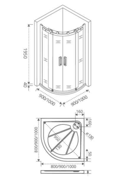 - ФормаЧетверть кругаТип дверейРаздвижныеТип стеклаПрозрачноеЦвет профиляЧерныйКол-во дверейДвеВысота, см195СтранаРоссия