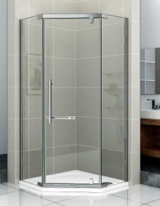 Пентагональная форма PNT – ограждение с одной распашной дверью, размер 100х100 см- выполнено из 8-ми миллиметрового закаленного, безопасного стекла;- высота ограждения 1850 мм- открывание/закрывание двери обеспечивается благодаря поворотной петле;- верхний и нижний профиль входа изготовлен из нержавеющей стали- профиля пристенные выполнены из анодированного алюминия с высококачественным покрытием;- стыковые элементы стеклянного ограждения снабжены влагостойкими силиконовыми уплотнителями;- магнитное закрывание обеспечивает герметичное прилегание дверей;