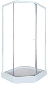 Белый профиль и прозрачное стекло придают уголку визуальную невесомость. Благодаря универсальному дизайну, уголок не будет перетягивать на себя внимание от общей идеи оформления ванной. За счет трапециевидной формы модель занимает мало места, но внутри комфортно принимать душ.Достоинства:Травмобезопасное закаленное стекло 4 мм: в случае битья, полотно рассыпается на гранулы, о которые невозможно порезаться.Низкий поддон (12 см) легко переступать. Рельефное дно предупреждает падения.Одинарные нажимные ролики обеспечивают плавный ход створок.Двери смыкаются плотно, вода наружу не просачивается.В комплекте – сифон.