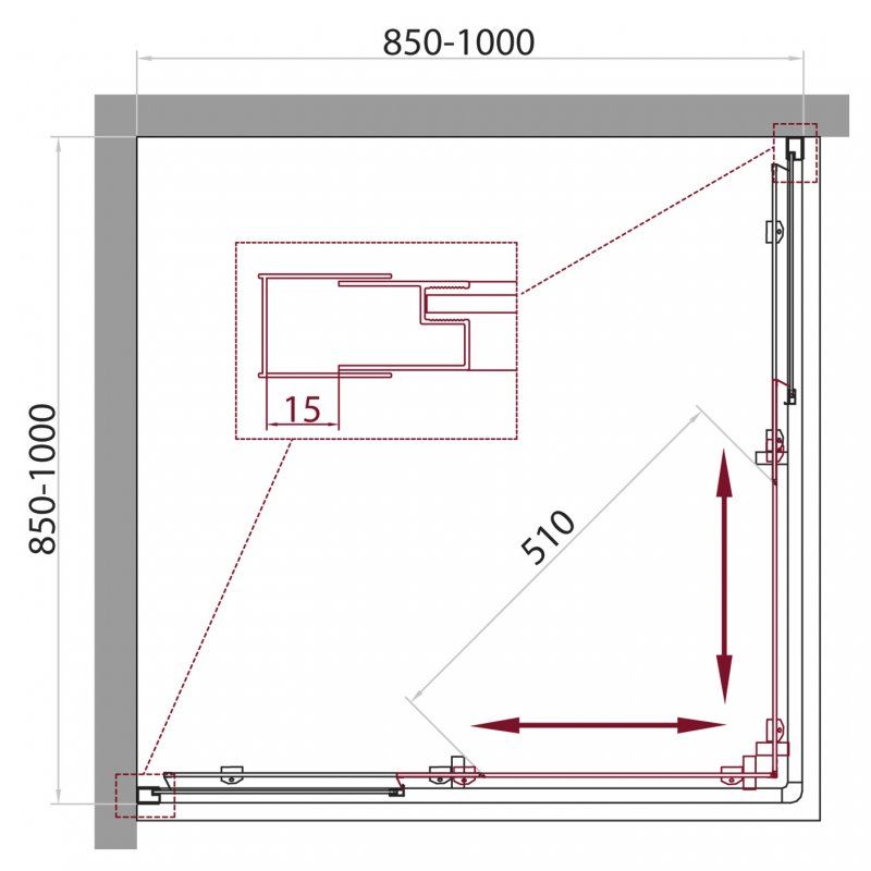 Душевой уголок прямоугольный, хром BelBagno UNIQUE-A-2-85/100-C-Cr