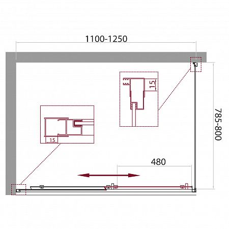 Душевой уголок прямоугольный, хром BelBagno UNIQUE-AH-1-110/125-80-C-Cr