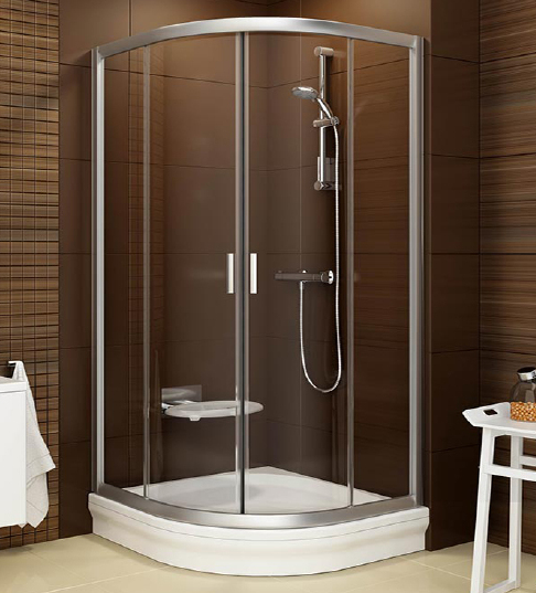 Изделие состоит из двух ровных неподвижных частей и двух изогнутых частей, образующих раздвижные двери. Устанавливается в облицованный кафелем угол ванной комнаты на поддоны RAVAK RONDA, ELIPSO, ELIPSO PRO, ELIPSO PRO FLAT, ELIPSO PRO CHROME или непосредственно на пол со встроенным душевым каналом или трапом. Возможно изготовление атипичного душевого уголка.