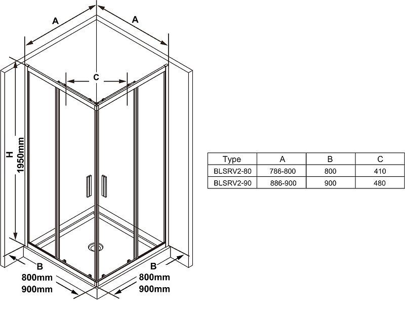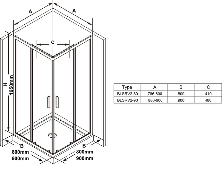 Душевой уголок Ravak Blix Slim BLSRV2-80 80x80 X1LM40C00Z1 профиль Хром стекло Transparent
