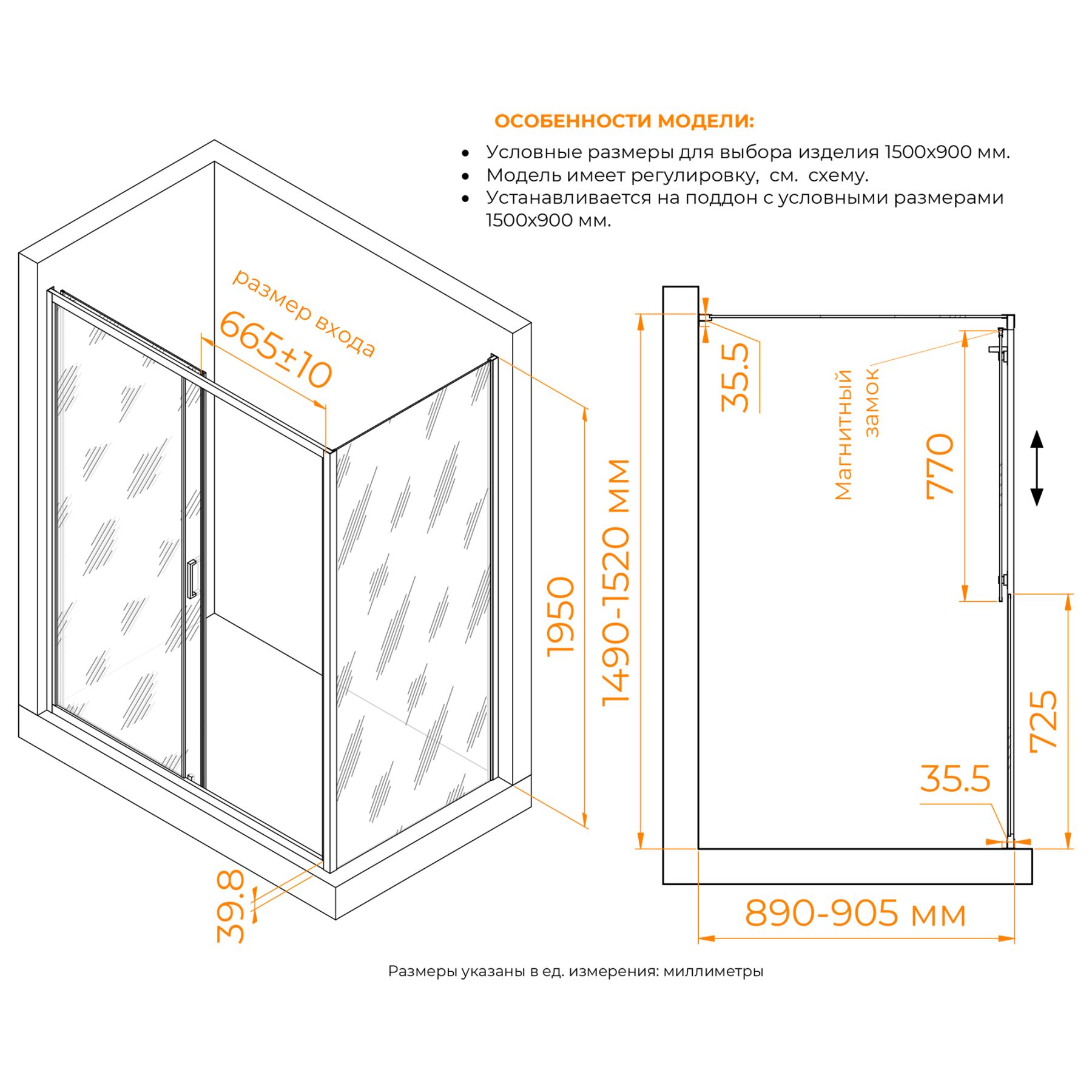 Душевой уголок RGW Classic CL-133 (CL-13 + Z-03), 060913359-31, 150 х 90 см, дверь раздвижная, с... Подробнее