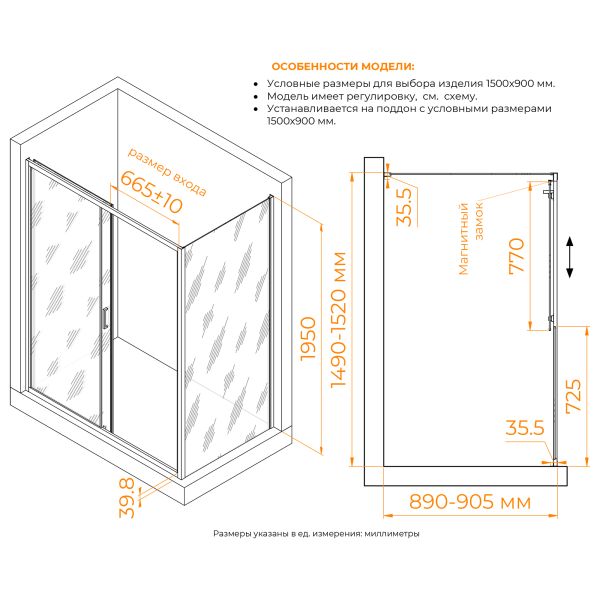 • Размеры с диапазоном регулировок: (1190-1220)x(790-805) мм