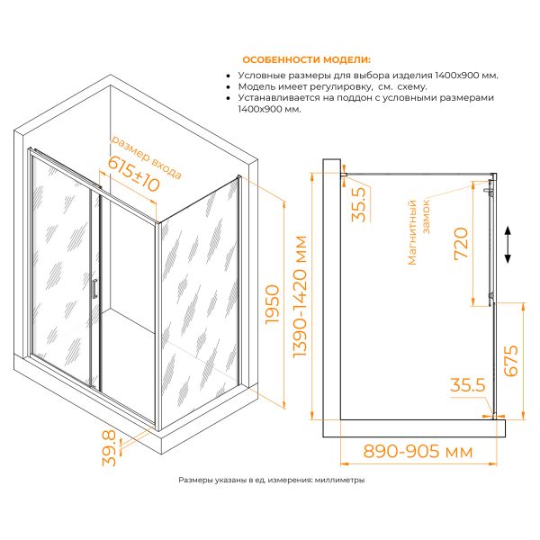 Душевой уголок RGW Classic CL-133B (CL-13 + Z-03), 060913349-34, 140 х 90 см, дверь раздвижная, ... Подробнее
