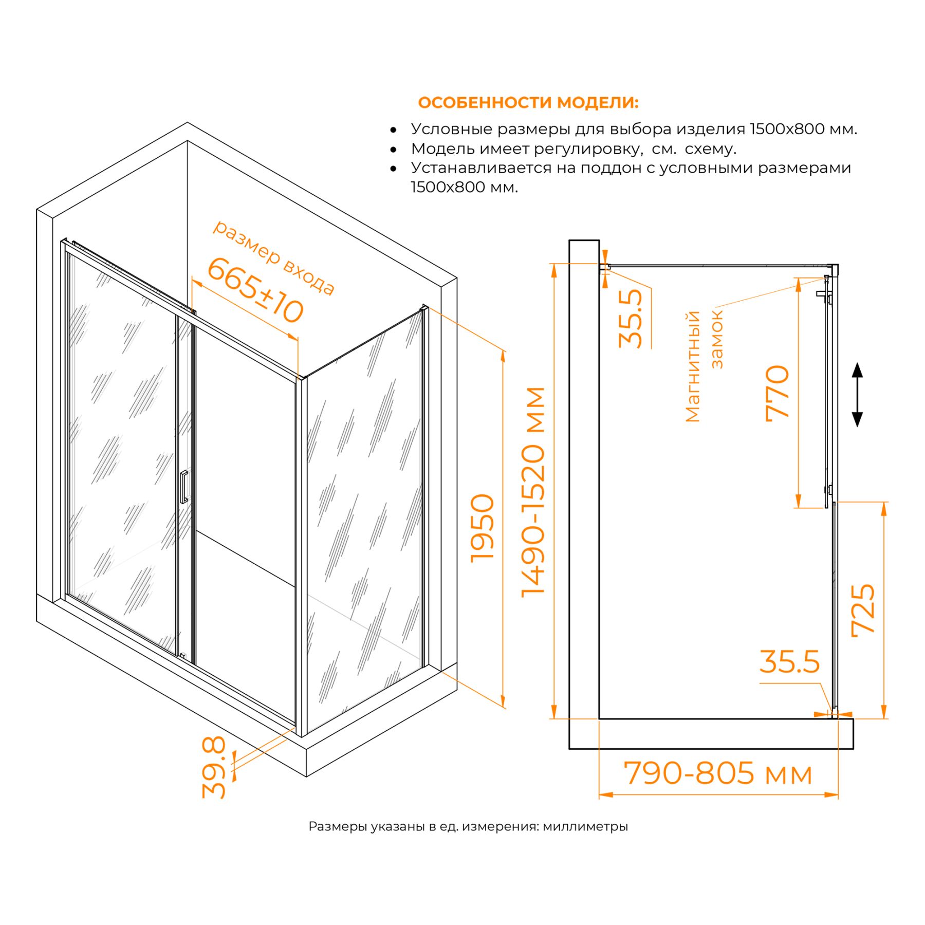 • Конструкция дверей: раздвижная