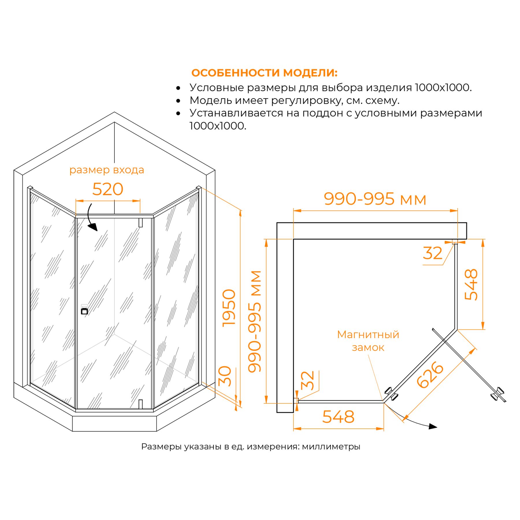 - Толщина стекла: 8 мм