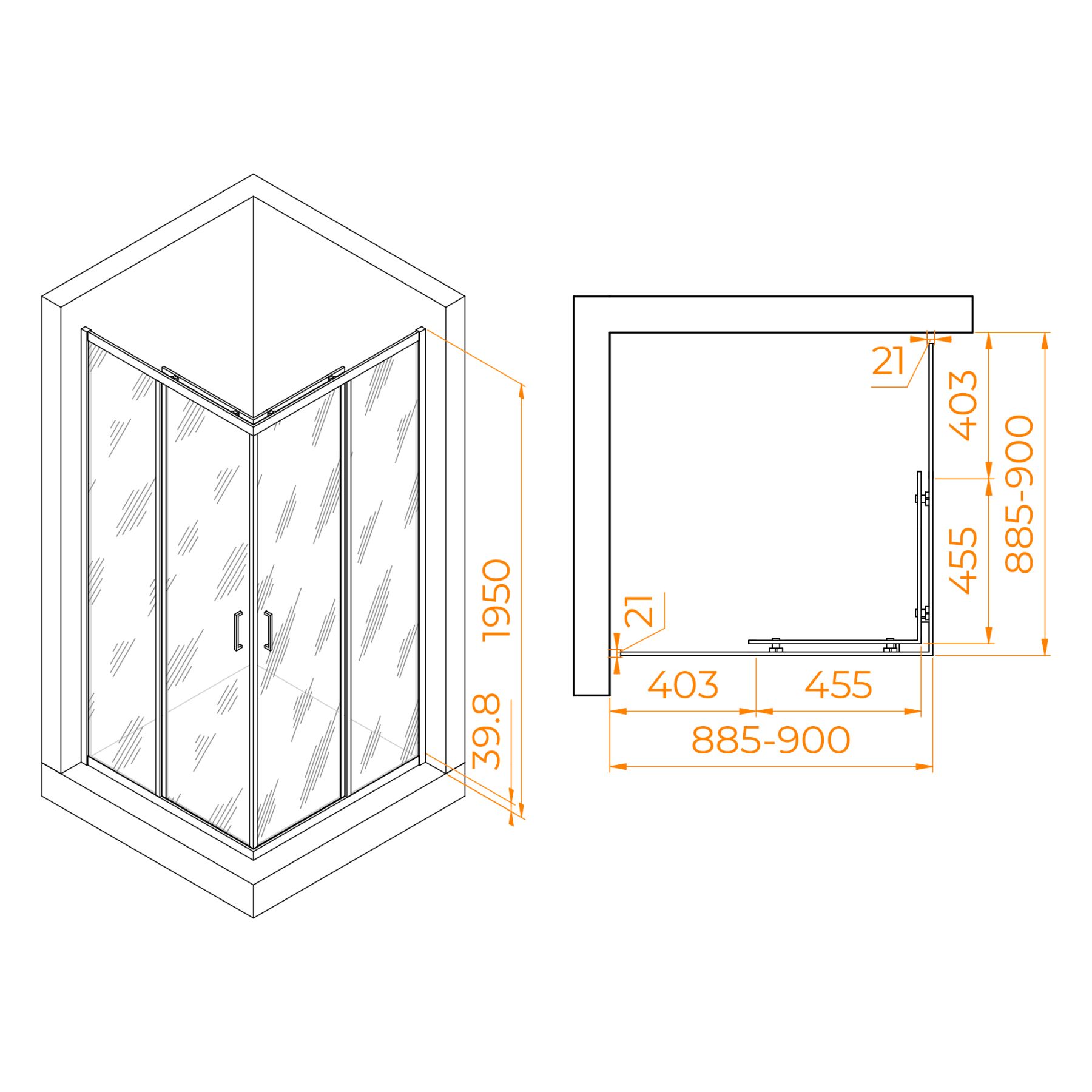 Душевой уголок RGW PA-030B 3508103099-14 90x90см чёрный