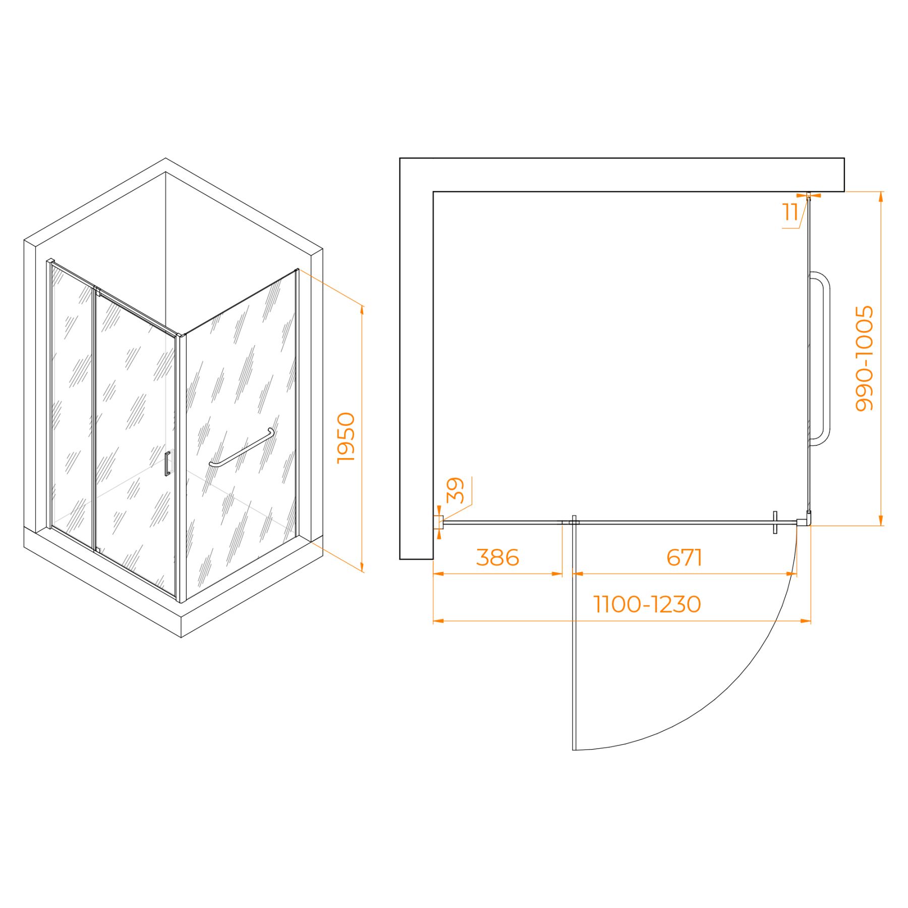 Душевой уголок RGW PA-078-1 (RGW PA-008 + Z-060-2) 3508078110-11 110x100см хром