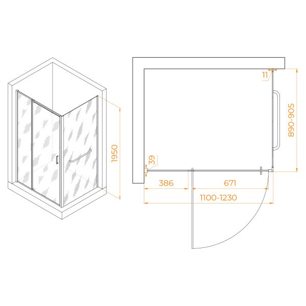 Душевой уголок RGW PA-078-1 (RGW PA-008 + Z-060-2) 3508078119-11 110x90см хром