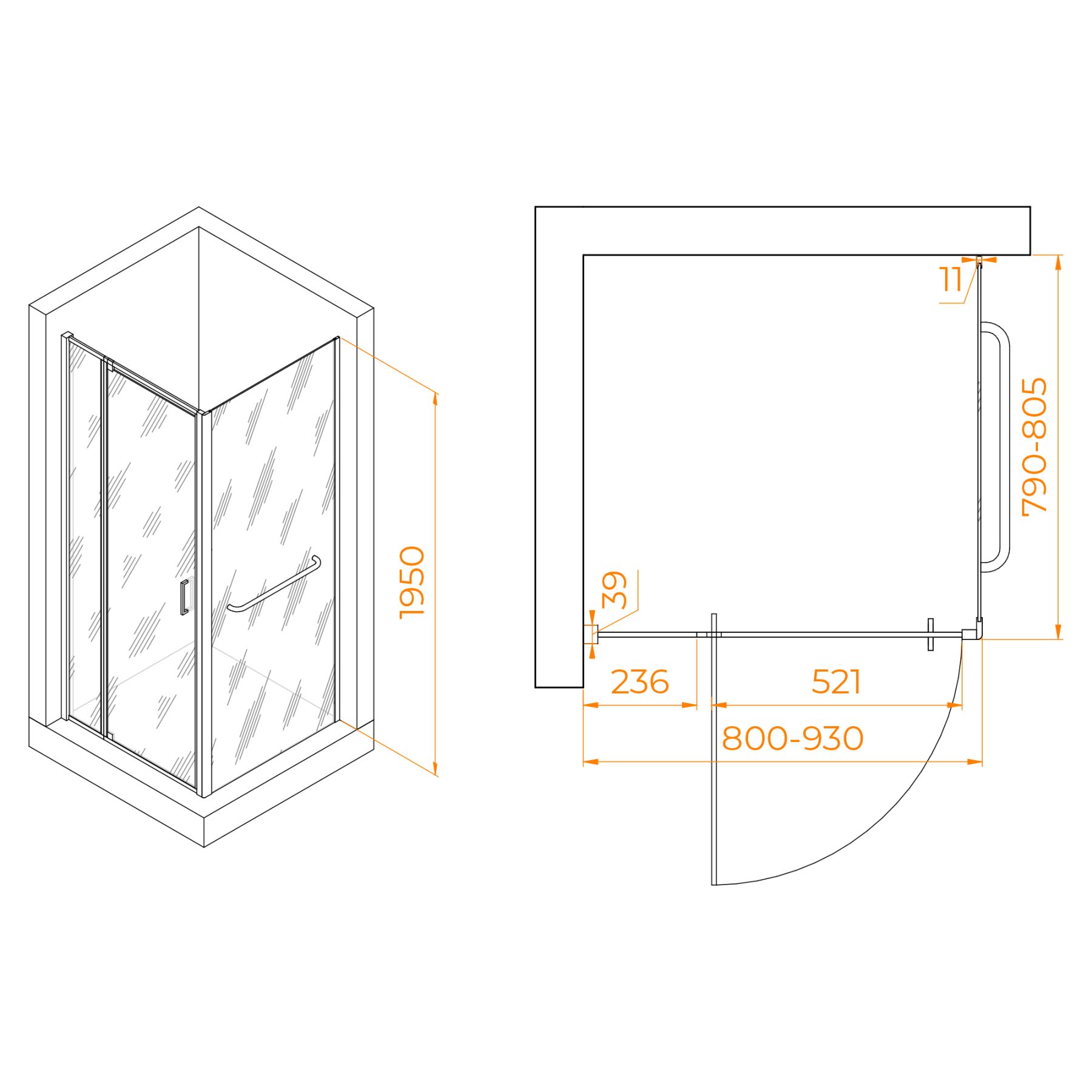 Душевой уголок RGW PA-078-1 (RGW PA-008 + Z-060-2) 3508078188-11 80x80см хром