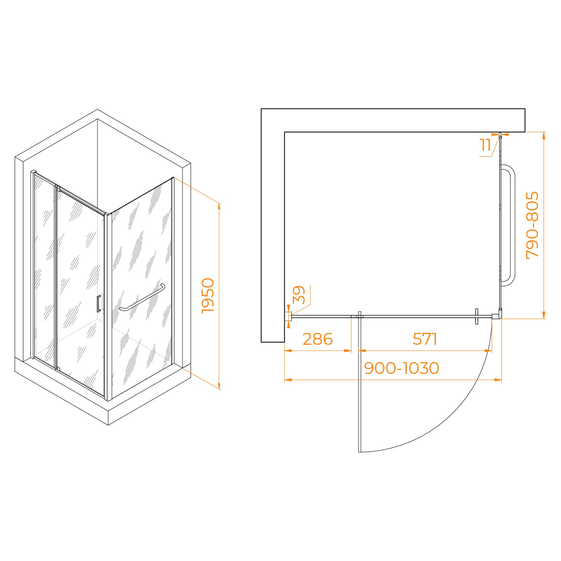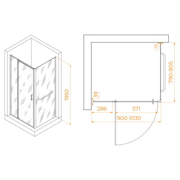 Душевой уголок RGW PA-078-1 (RGW PA-008 + Z-060-2) 3508078198-11 90x80см хром