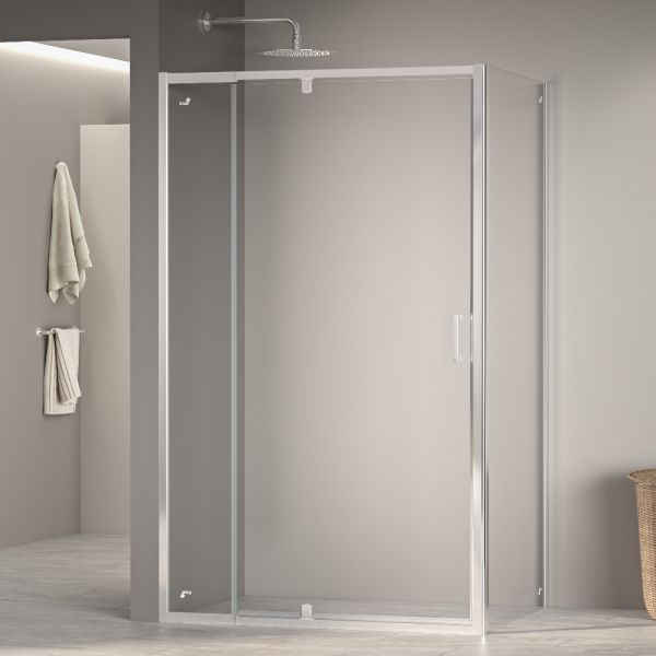 Для полноценной эксплуатации уголка необходимо дополнительно установить поддон или трап. Высота конструкции составляет 195 см. В производстве используется высококачественное закалённое стекло толщиной 6 мм, обладающее повышенной прочностью и безопасностью. Стекло имеет прозрачное исполнение и покрытие Easy Clean, которое минимизирует появление разводов, следов воды и упрощает регулярный уход.