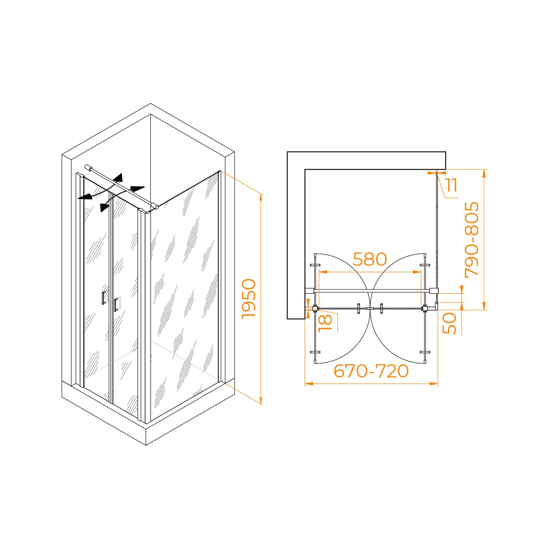 Душевой уголок RGW PA-144B (PA-104B+Z-050-2B+O-104B) 060814478-014 70x80см чёрный