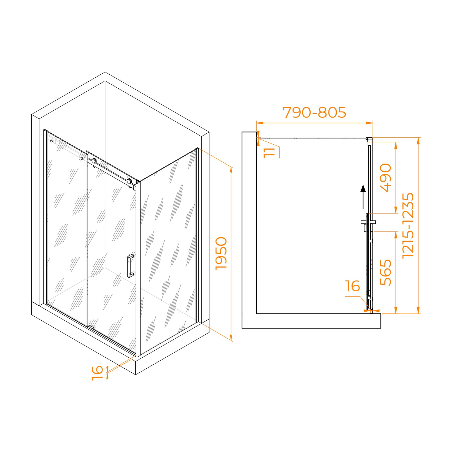 Душевой уголок RGW TO-44-1B (TO-14B + Z-060-2B) 020744128-14 120x80см чёрный