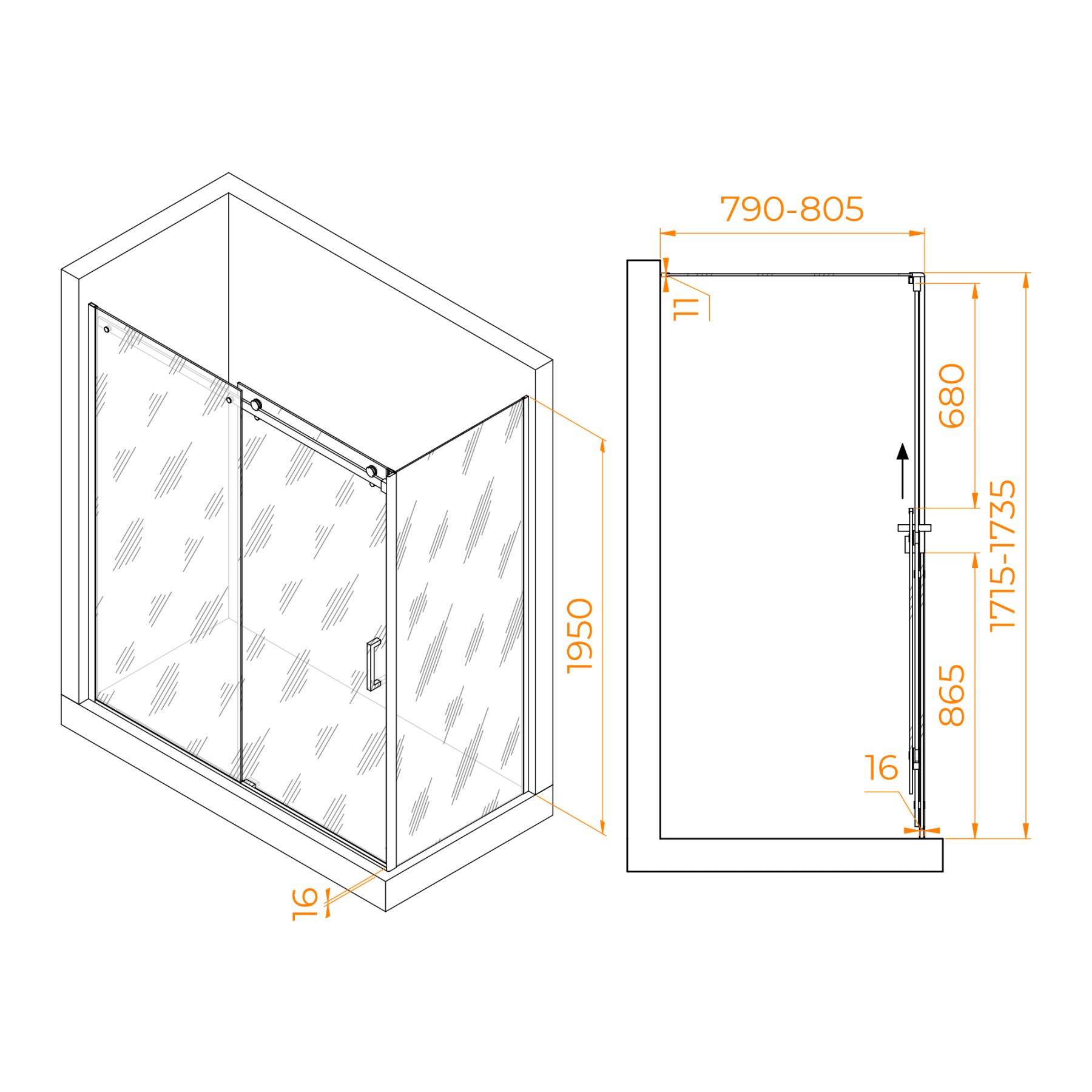 Душевой уголок RGW TO-44-1B (TO-14B + Z-060-2B) 020744178-14 170x80см чёрный купить
