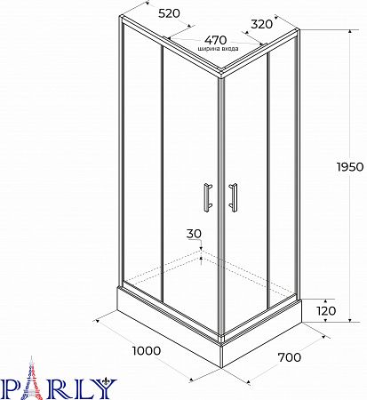 Душевой уголок с поддоном PARLY QZ71B N (70х100х195)