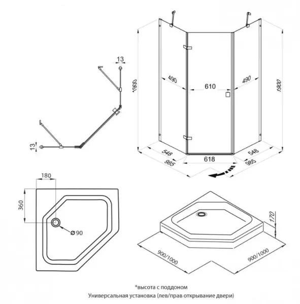• Поддон душевой со съёмным экраном