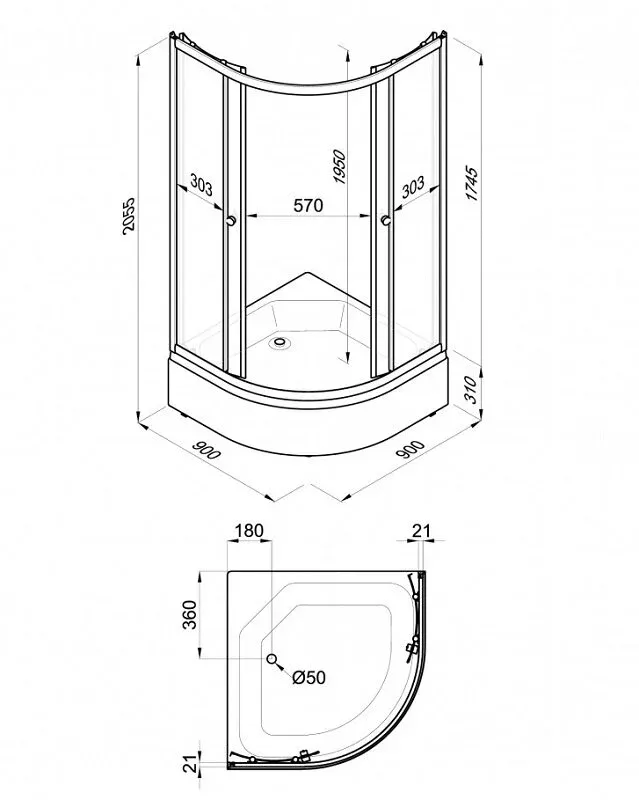 Душевой уголок Размер: 90 x 90 x 174.5 см Высота с поддоном: 205.5 см Конструкция дв... Подробнее
