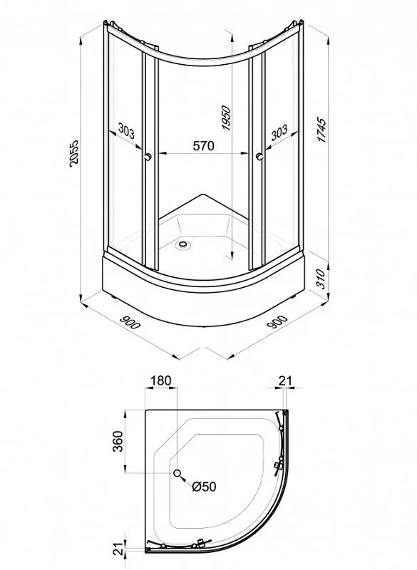 Высота с поддоном: 205.5 см