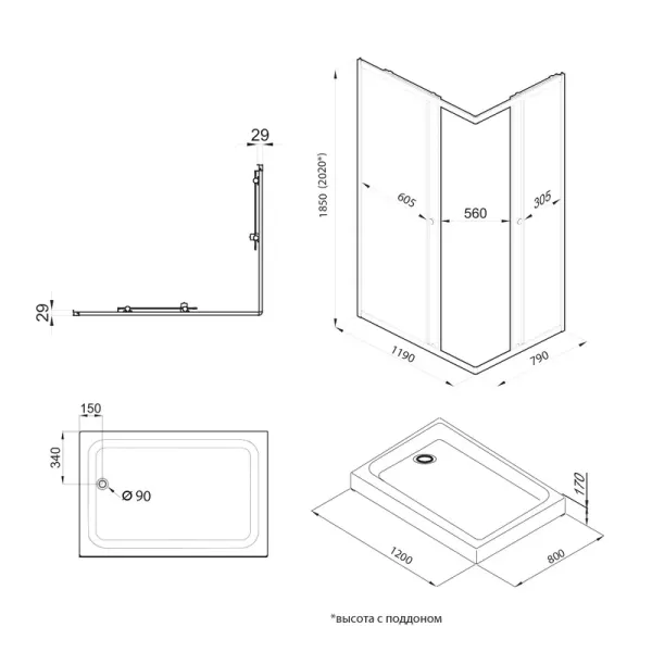 Поддон изготовлен из акрила: высокопрочный, легкий, гигиеничный и долговечный. Гладкая поверхность не впитывает загрязнения