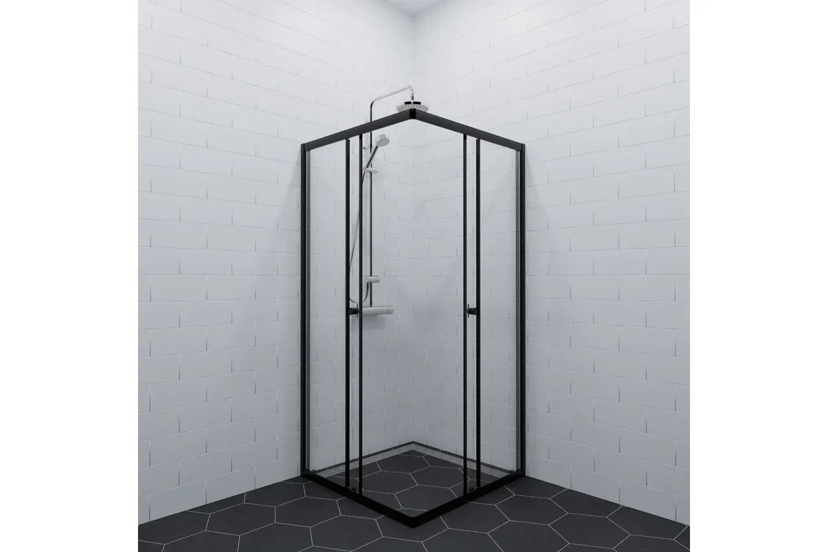 Черный профиль в сочетании с закаленным стеклом толщиной 4 мм, раздвижной механизм дверей и универсальная установка – всё это создаст неповторимую атмосферу в вашей ванной!