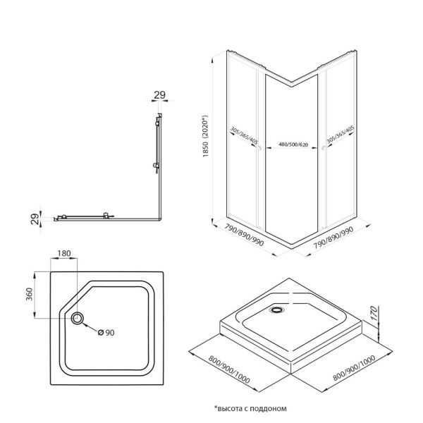 Черный профиль в сочетании с закаленным стеклом толщиной 4 мм, раздвижной механизм дверей и универсальная установка – всё это создаст неповторимую атмосферу в вашей ванной!