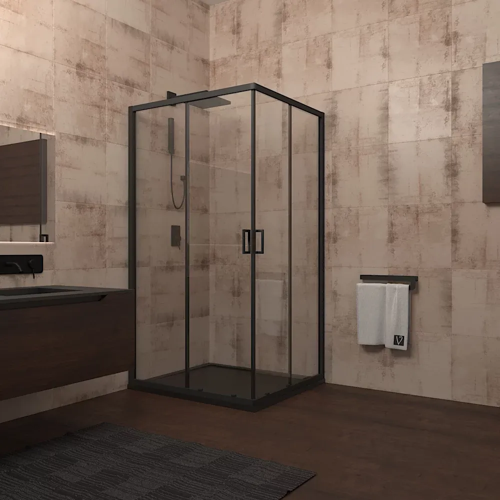 Душевой уголок Veconi Rovigo RV-13, 800x800x1950, черный, стекло прозрачное купить