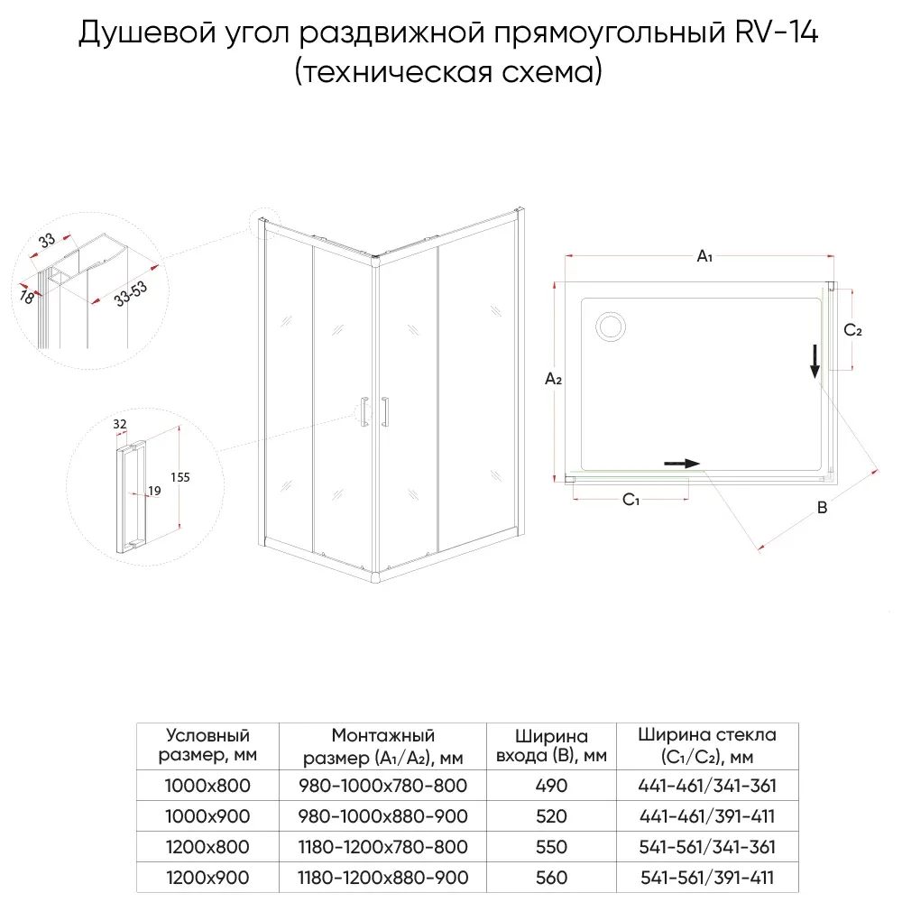 Душевой уголок Veconi Rovigo RV-14, 1200x800x1950, черный, стекло прозрачное купить