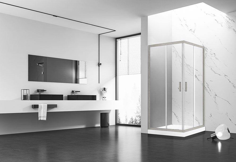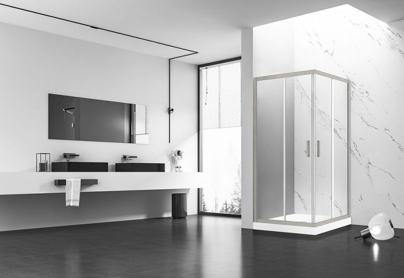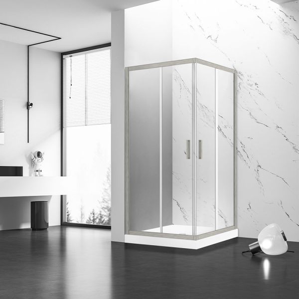 Душевой уголок Veconi Rovigo RV-83, 800x800x1950, никель брашинг, прозрачное стекло купить