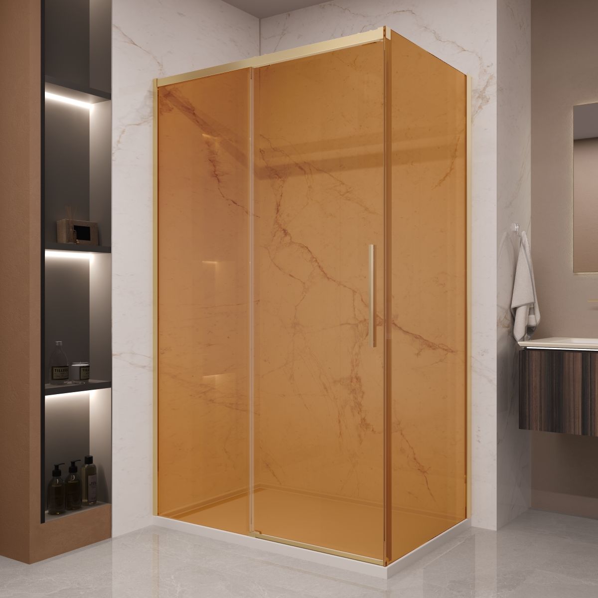 Душевой уголок Vincea Stella VSR-1ST9012GSG, 1200*900, брашированное золото, стекло янтарь