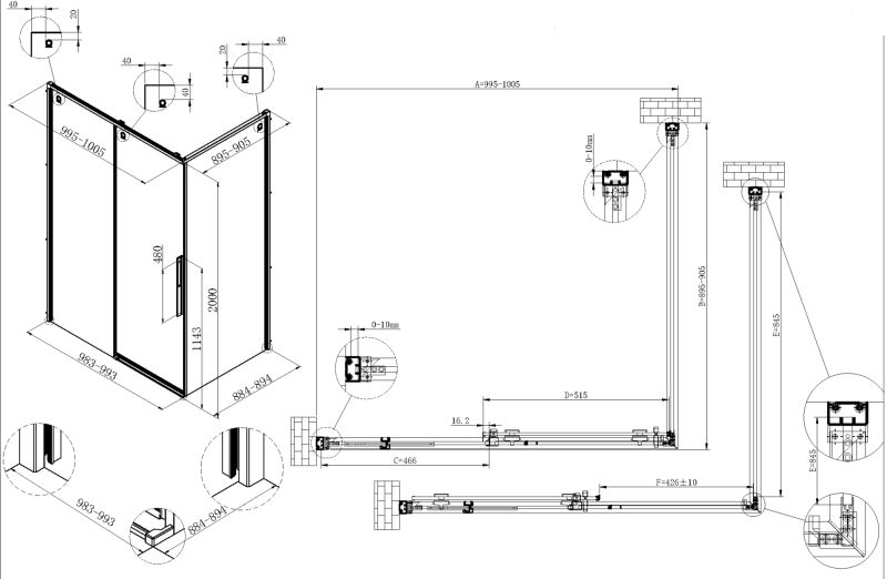 Душевой уголок Vincea Ultima VSR-7UL9010CLGM, 1000*900, вороненая сталь, стекло прозрачное