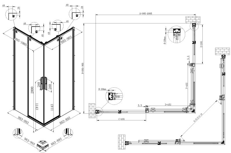 Душевой уголок Vincea Ultima VSS-7UL9010CLGM, 900*1000, вороненая сталь, стекло прозрачное