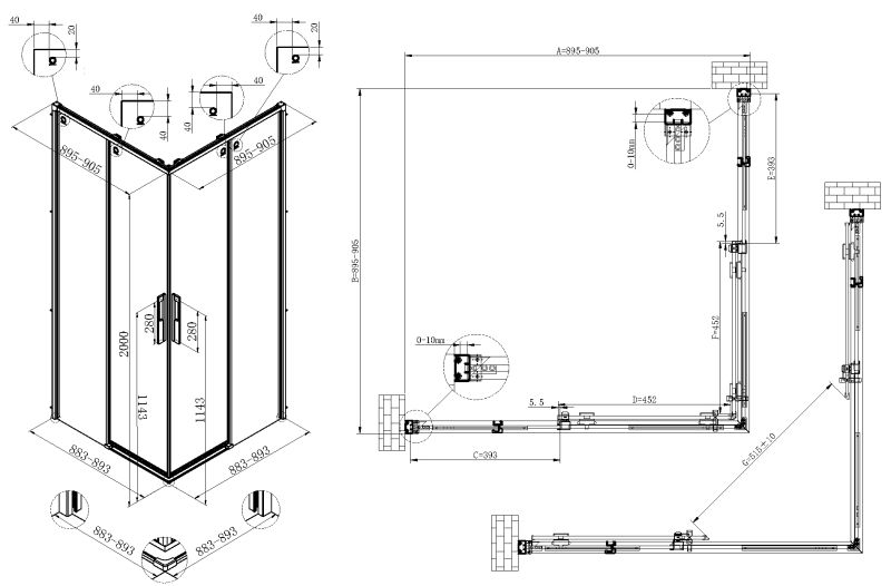 Душевой уголок Vincea Ultima VSS-7UL9090CLGM, 900*900, вороненая сталь, стекло прозрачное