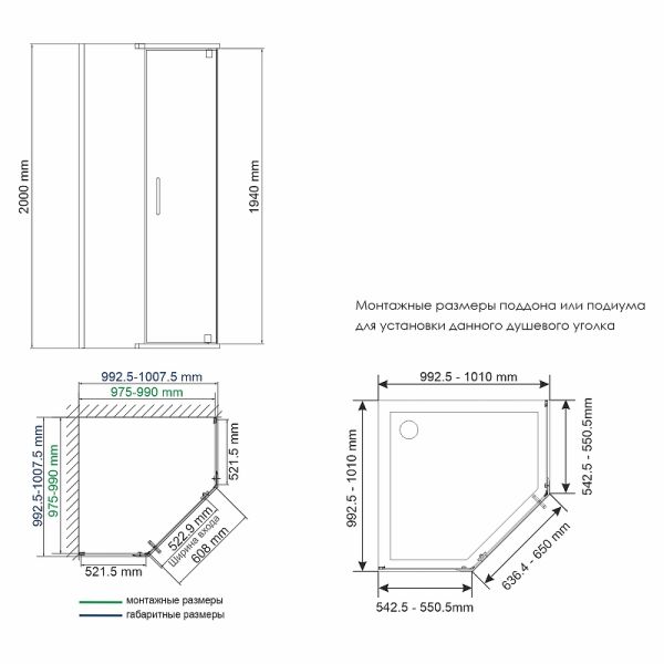 • Стандартные размеры, см: