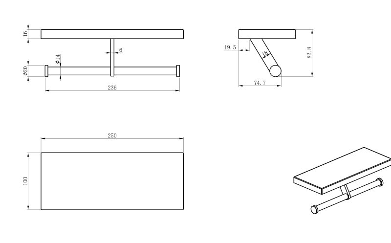 Двойной держатель для туалетной бумаги с полкой Wonzon & Woghand WW-V3802-MB чёрный матовый купить